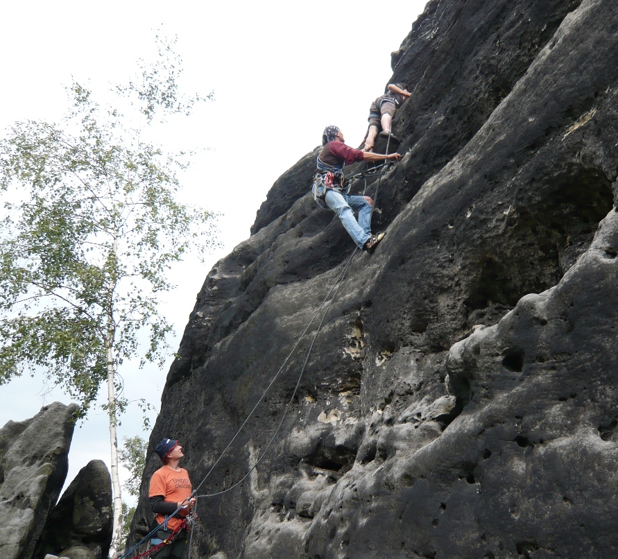 Der letzte Klettertag rückte heran. Und so traten wir in Bestbesetzung mit Dirk und Johanna Wiesner,