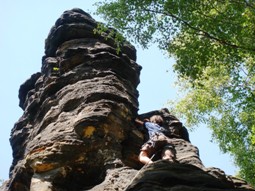 Die II am Südweg sollte Johannes vorsteigen. Nicht das es klettertechnisch für ihn eine Herausvorderung wäre, aber wie immer im Sandstein, man weiß nicht was einen