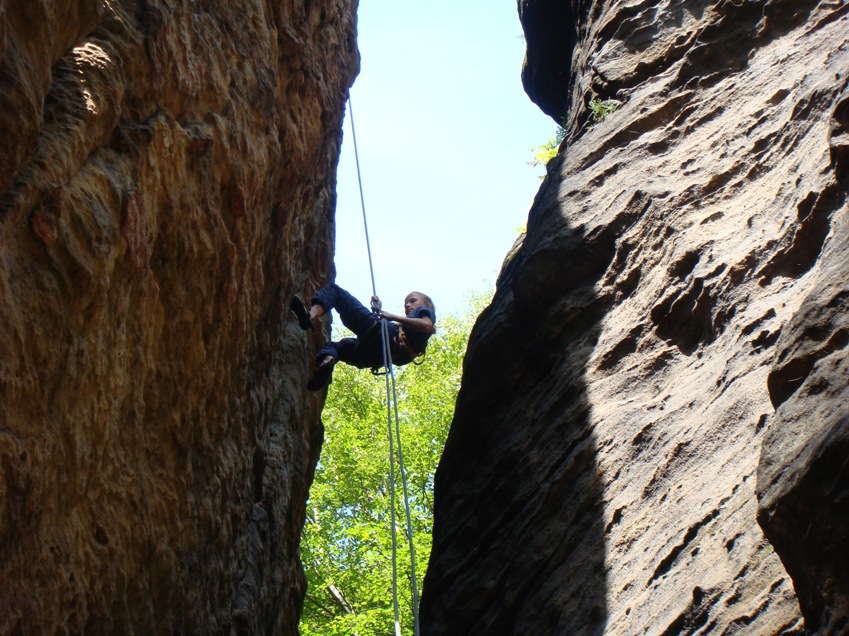 Johannes und meine Wenigkeit bei großartigem Wetter in das wohl am besten besuchte Klettergebiet im Elebsandsteingebirge. Dafür, dass der 9.07.2009 ein Mittwoch war, mussten wir
