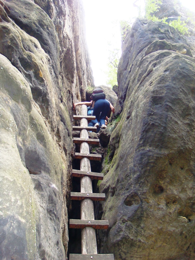 Links ein Bild vom Zustieg. Am Ende der Leiter folgt ein schmales Plateau mit Absturzgefahr, also Kinder nicht allein da hoch lassen.