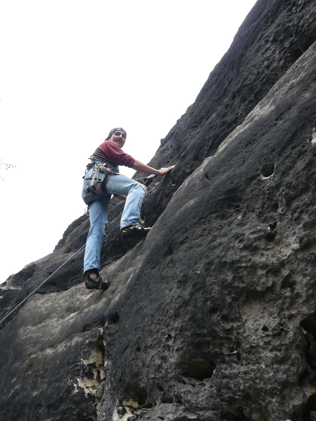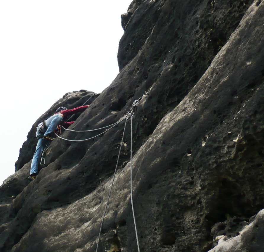 jetzt kommt der VIIb-Zug. Es sind nur kleine Mulden zum Greifen und dann an der senkrechten Wand auf kleinen