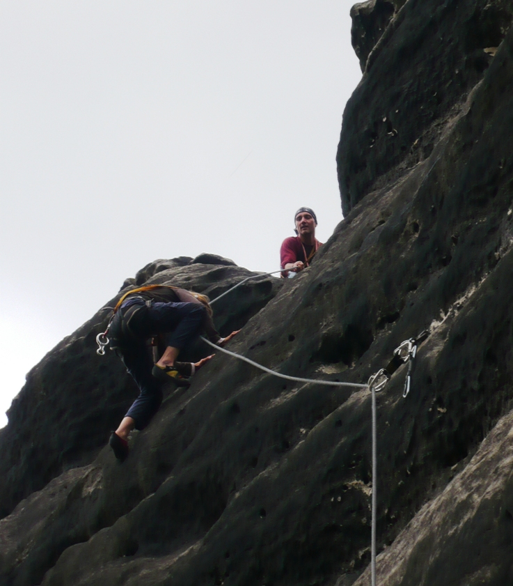 Der letzte Klettertag rückte heran. Und so traten wir in Bestbesetzung mit Dirk und Johanna Wiesner,